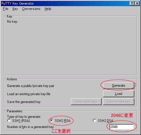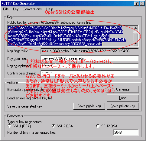 - ※ これでPutty専用の秘密鍵が保存できるはずです。