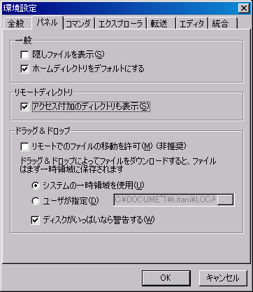 さらに「パネル」項目の「隠しファイルを表示」のチェックを外しておくのが無難でしょう。隠しファイルをあやまって削除すると、次回ログインできなくなる可能性もあります。