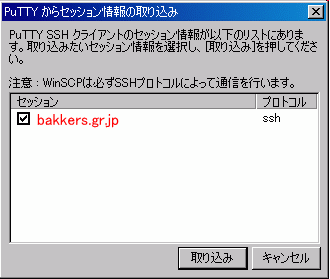 FTPしたいサーバへ登録した公開鍵を選択します。そして取り込みを押します。