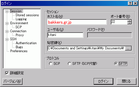 出てきた画面で「プロトコル」を[SFTP」に変更します。