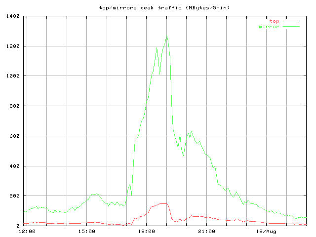 バイト転送量の上ではトップサーバとミラーサーバでは 1:8 程度の