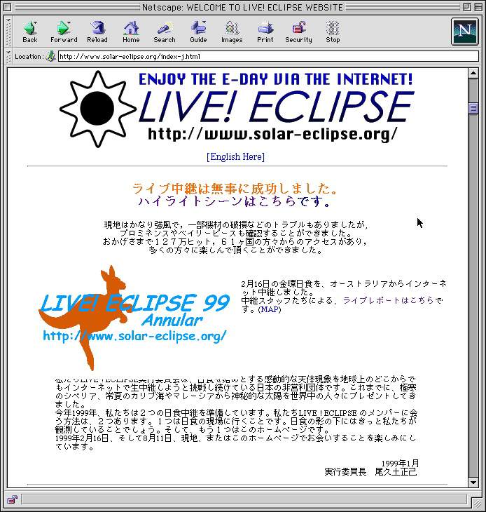 1999 年 2 月、再び Live! Eclipse99 Annularプロジェクトの御手伝いをしました。
