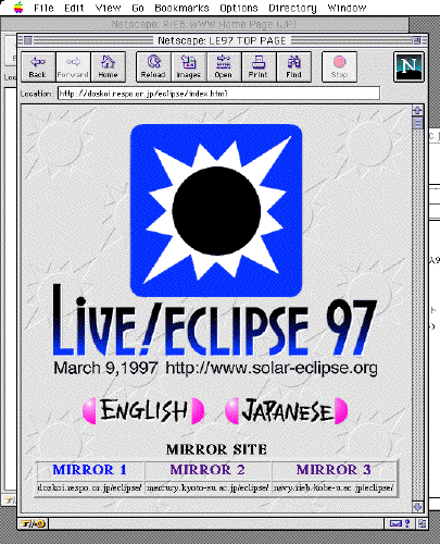今回ミラーは doskoi.respo.or.jp, mercury.kyoto-su.ac.jp, navy.rieb.kobe-u.ac.jp の三つで立ち上げました。 結果的にオリジナルサイトがアメリカ、ミラーは国内だけで、それも全てちゅーけーずの息の掛かったサイトという事になりました。 出来れば WIDE, IIJ, TokyoInternet 各バックボーンに一つづつくらい欲しかった。